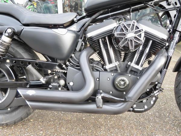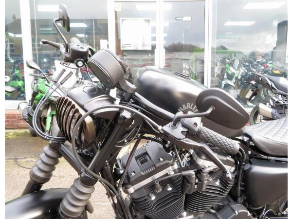 For sale here we present a 2019 Harley-Davidson Sportster XL883N Iron in matt black. The bike has covered 4,217 miles and had 2 owners from new. This XL883 Iron has Vance & Hines exhausts, Screamin Eagle air filter, Roland Sands Design clear clutch cover, side mounted number plate, upgraded adjustable rear shock absorbers, headlamp guard, and mini-indicators with inter-grated tail light. Finance, part exchange and nationwide delivery are available. HPI clear. Secure this Sportster today with a deposit of only £99! If you would like any further information, please do not hesitate to contact our sales team.