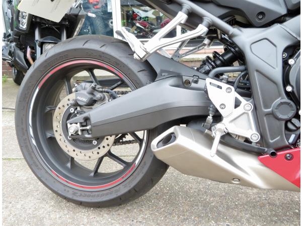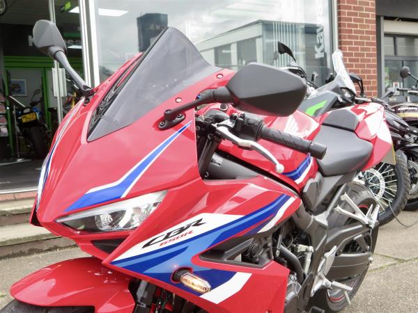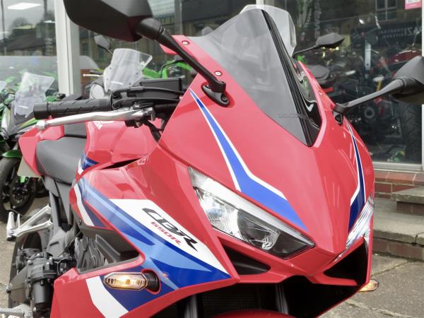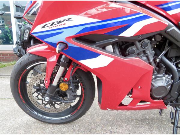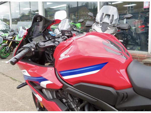 For sale here we present a 2024 Honda CBR650R E-Clutch in red. 1 owner and 2,453 miles from new. This immaculate example comes with an EvoTech radiator guard, EvoTech tail tidy, EvoTech quad lock mounting bracket, Honda smoked screen, Honda rear seat cowl and Honda tank protector. Abs, torque control, LED lighting and a TFT display are standard. Finance, part exchange and nationwide delivery are available. Secure this lovely example today with a deposit of only £99! If you would like any further information, please do not hesitate to contact our sales team.