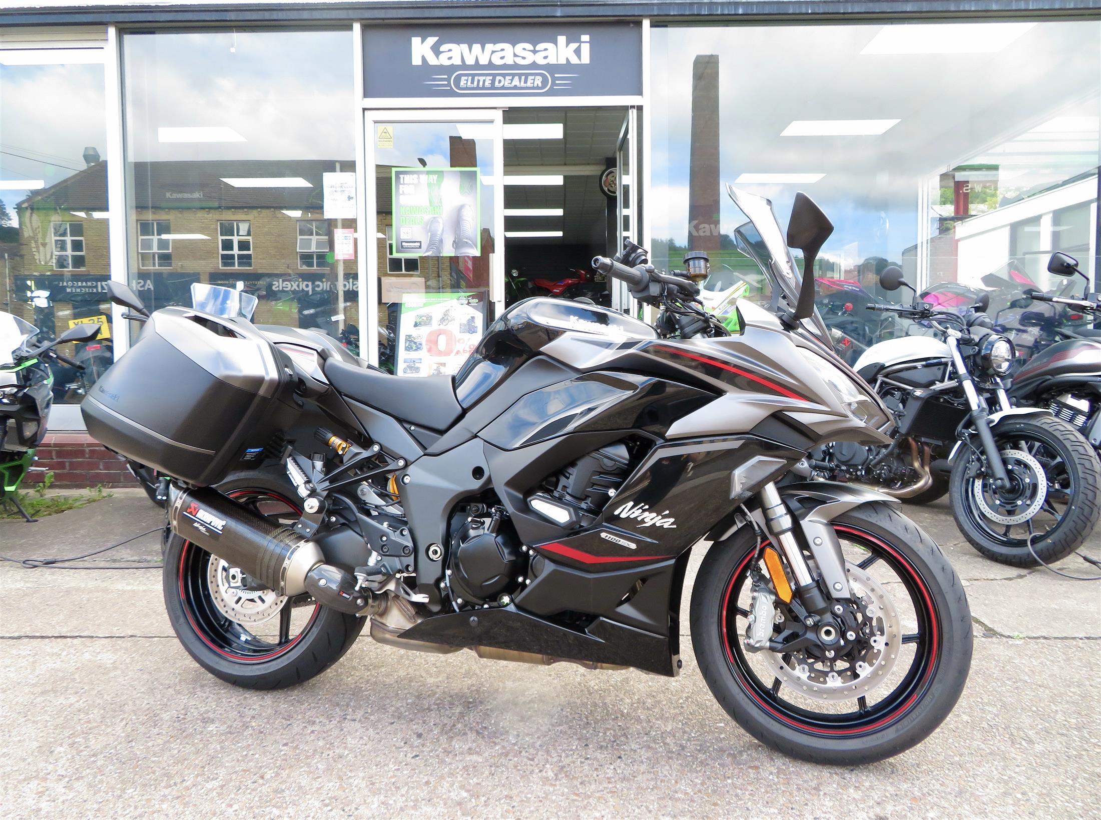 For sale here we are proud to present a 2025 Kawasaki Ninja 1100 SX SE Performance Tourer. The bike has covered 709 miles and had 1 owner from new. This stunning SE model features an OHLINS rear shock and BREMBO front brakes. The Performance Tourer model includes an AKRAPOVIC carbon exhaust, seat cowl, smoked touring windshield, frame sliders, panniers, pannier inner bags, dash protector, tank protector, 12v power outlet and a phone holder. Abs, heated grips, cruise control, quick-shifter, auto-blipper, traction control, riding modes, 4-stage adjustable screen, LED lighting, TFT display are standard on this bike. Finance, part exchange and nationwide delivery are available. Kawasaki warranty remaining until 06/2029. Secure this stunning example today with a £99 deposit. If you would like any further information, please do not hesitate to contact our sales team.