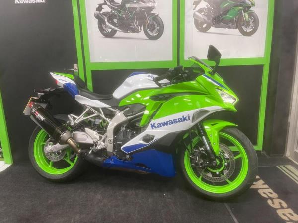 For sale here we present a 2024 Kawasaki Ninja ZX-4RR 40th Anniversary Performance Edition. The bike has covered 1,668 miles and had 1 owner from new. Abs, LED lighting, TFT display, riding modes, traction control and a quick-shifter are standard on this model. This lovely example has an Akrapovic carbon exhaust, rear seat cowl, smoked screen, tank protector, GB Racing lever guards, GB Racing engine case covers, GB racing crash bobbins and GB Racing rear paddock stand bobbins. Finance, part exchange and nationwide delivery are available. Secure this ZX-4RR today with a deposit of only £99! If you would like any further information, please do not hesitate to contact our sales team.