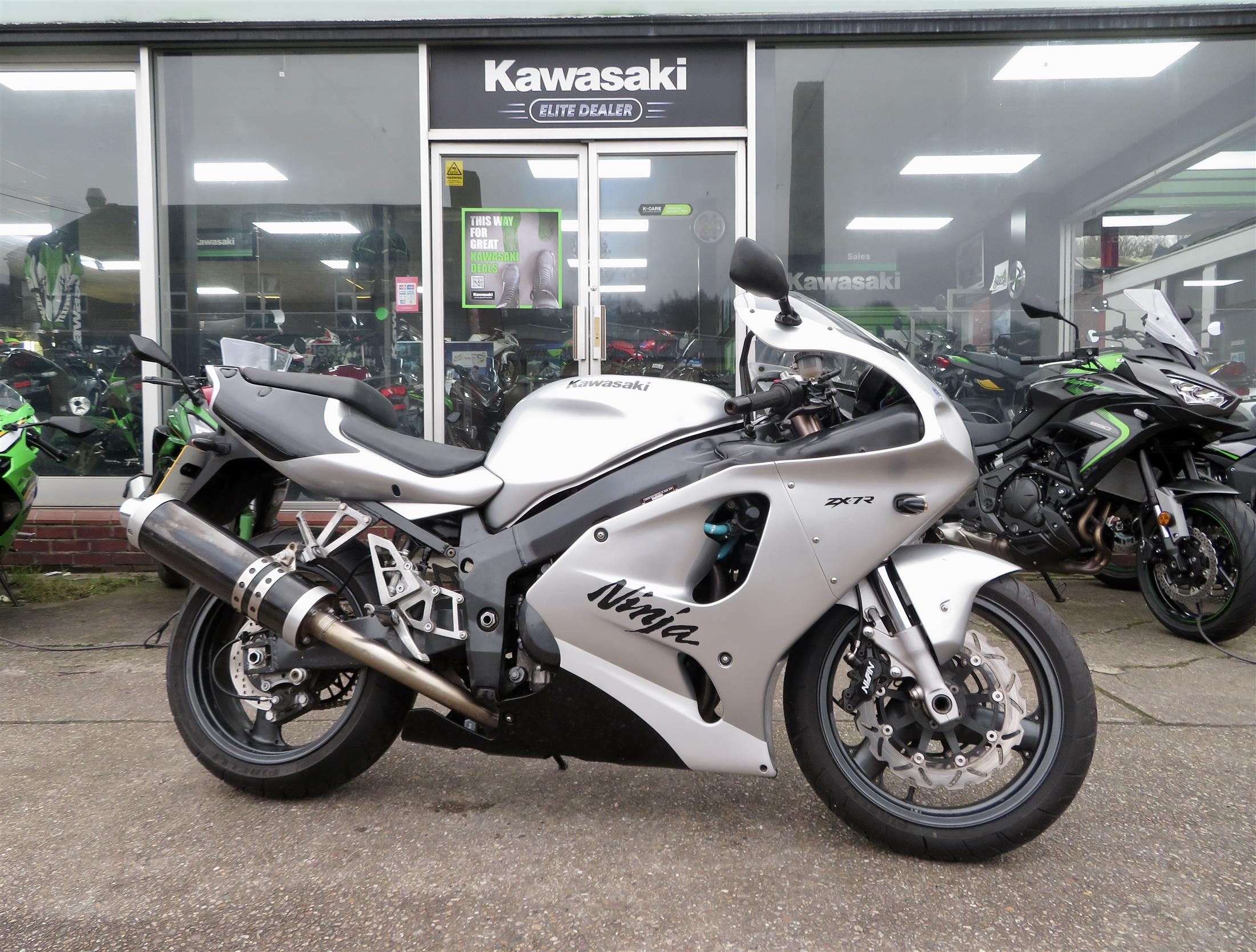 For sale here we present a Kawasaki Ninja ZX-7R P4 model in silver. The bike has covered 33,907 miles and had a total of 5 owners from new. Good service history. New chain and sprockets, a full service, new Hagon fork springs and a Hagon rear shock fitted less than 800 miles ago. Viewing is welcomed. Please give our sales team a call for any further information