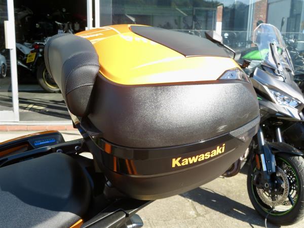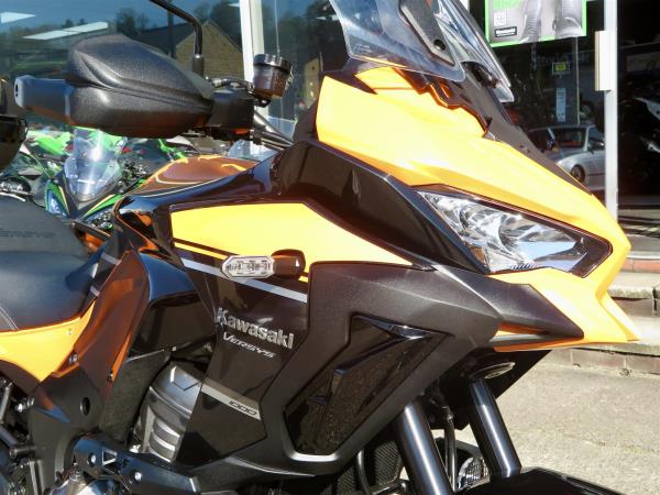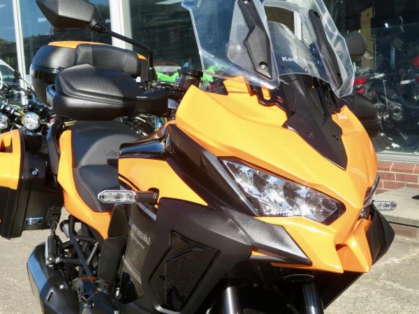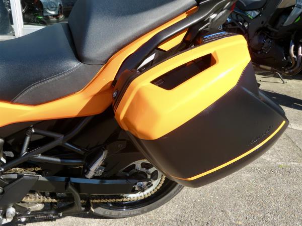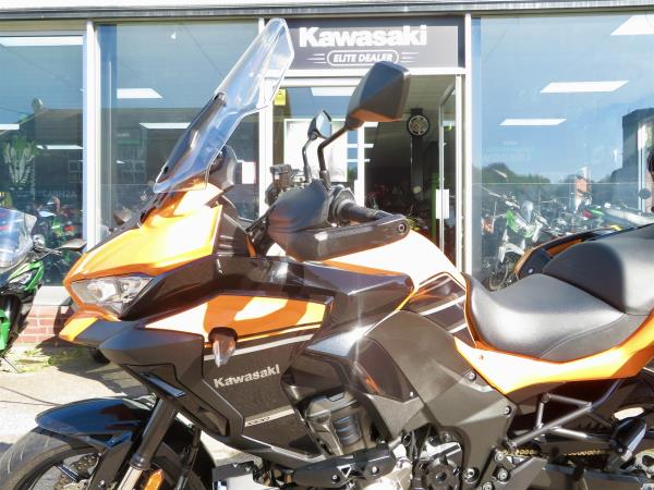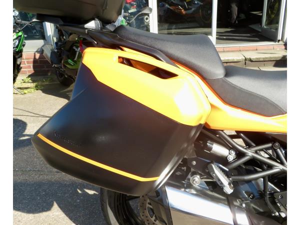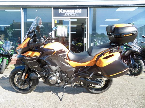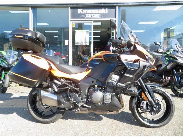 For sale here we present a 2020 Kawasaki Versys 1000 Grand Tourer in Candy Steel Furnace Orange. The Grand Tourer model includes 3-box colour coded luggage, a back-rest for the top box, pannier and top box inner bags, frame sliders, LED fog lamps, hand-guards, touring windshield and a 12v power outlet. This example also comes fitted with heated grips, a radiator guard and front fender extender. Recent chain and sprockets fitted. Abs, traction control, cruise control, power modes, an adjustable screen, remote pre-load adjuster and a centre stand are standard on this model. Finance, part exchange and nationwide delivery are available. 17,560 miles and 3 owners from new. Excellent condition, a very clean example. If you wish to secure this lovely Versys 1000 GT, or would like any further information, please do not hesitate to contact our sales team.