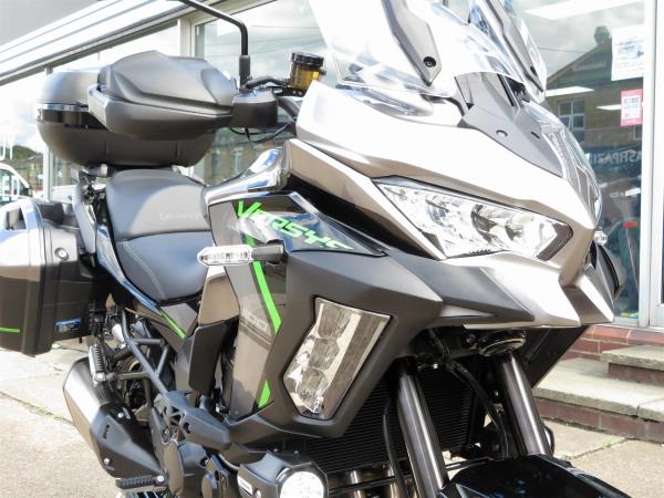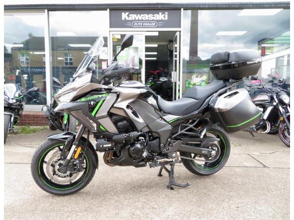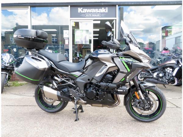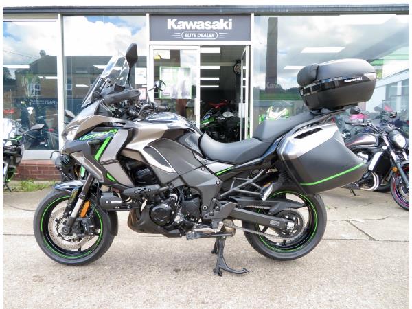 For sale here we present a 2025 Kawasaki Versys 1100 S Grand Tourer. 1 owner and 587 miles from new. Registered 20/08/2025. Cruise control, heated grips, quick-shifter- auto-blipper- 3-stage corning lights, traction control, riding modes, centre stand, hand-guards, lean angle display and an adjustable screen are standard on this ‘S’ model. Kawasaki 3-box luggage, frame sliders, LED driving lamps, tank protector, sat-nav bracket, 12v power outlet, pannier inner bags and a top box back-rest are part of the Grand Tourer kit. 1st service will be complete upon sale. Finance, part exchange and nationwide delivery are available. Kawasaki warranty until 08/2029. Secure this stunning example today with a £99 deposit. If you would like any further information, please do not hesitate to contact our sales team.
