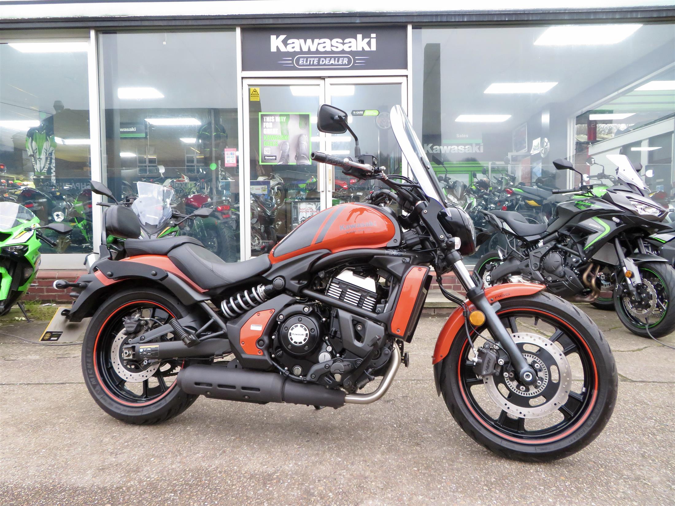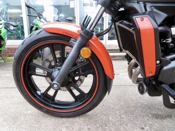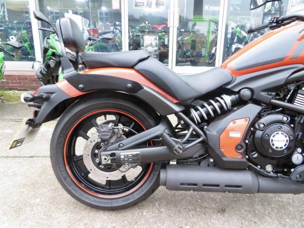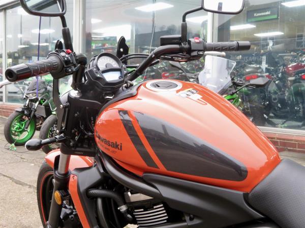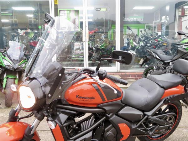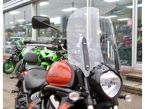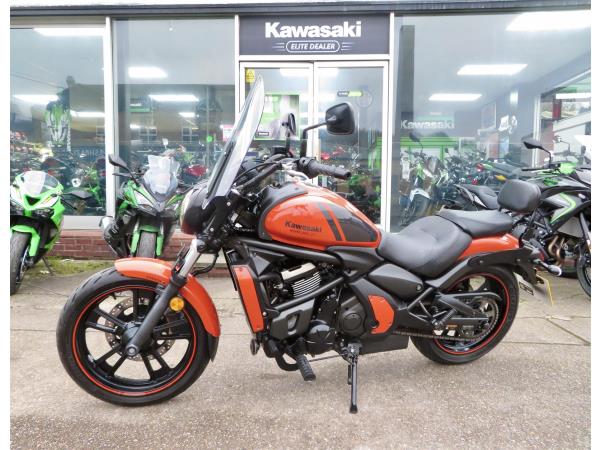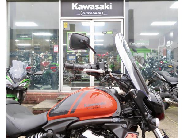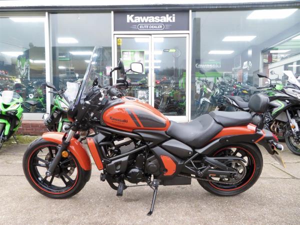 For sale here we present a 2018 Kawasaki Vulcan S in ‘Pearl Lava Orange’. The bike has covered miles and had 2 owners from new. Abs and a gear indicator are standard. The bike has a Kawasaki touring windshield, Kawasaki back-rest, front fender extender and a radiator guard fitted. Finance, part exchange and nationwide delivery are available. Secure this stunning Vulcan S 650 today with a deposit of only £99! If you would like any further information, please do not hesitate to contact our sales team.