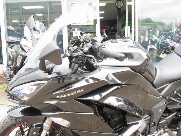 For sale here we present a 2018 Kawasaki Z1000SX in Metallic Spark Black. The bike has covered 20,318 miles and had 1 owner from new. A very clean, well cared for example. This Z1000SX has Oxford heated grips, Pyramid Plastics front fender extender, rear hugger extender, twin ‘usb’ port that shows battery voltage, R&G boot guard protection, venture shield fitted in areas and Givi Monokey 3-box luggage framework. Abs, traction control, power modes, a gear indicator, LED headlight, 3-stage adjustable screen and remote pre-load adjuster are standard. Finance, part exchange and nationwide delivery are available. Secure this lovely Z1000SX today with a deposit of only £99. If you would like any further information, please do not hesitate to contact our sales team.