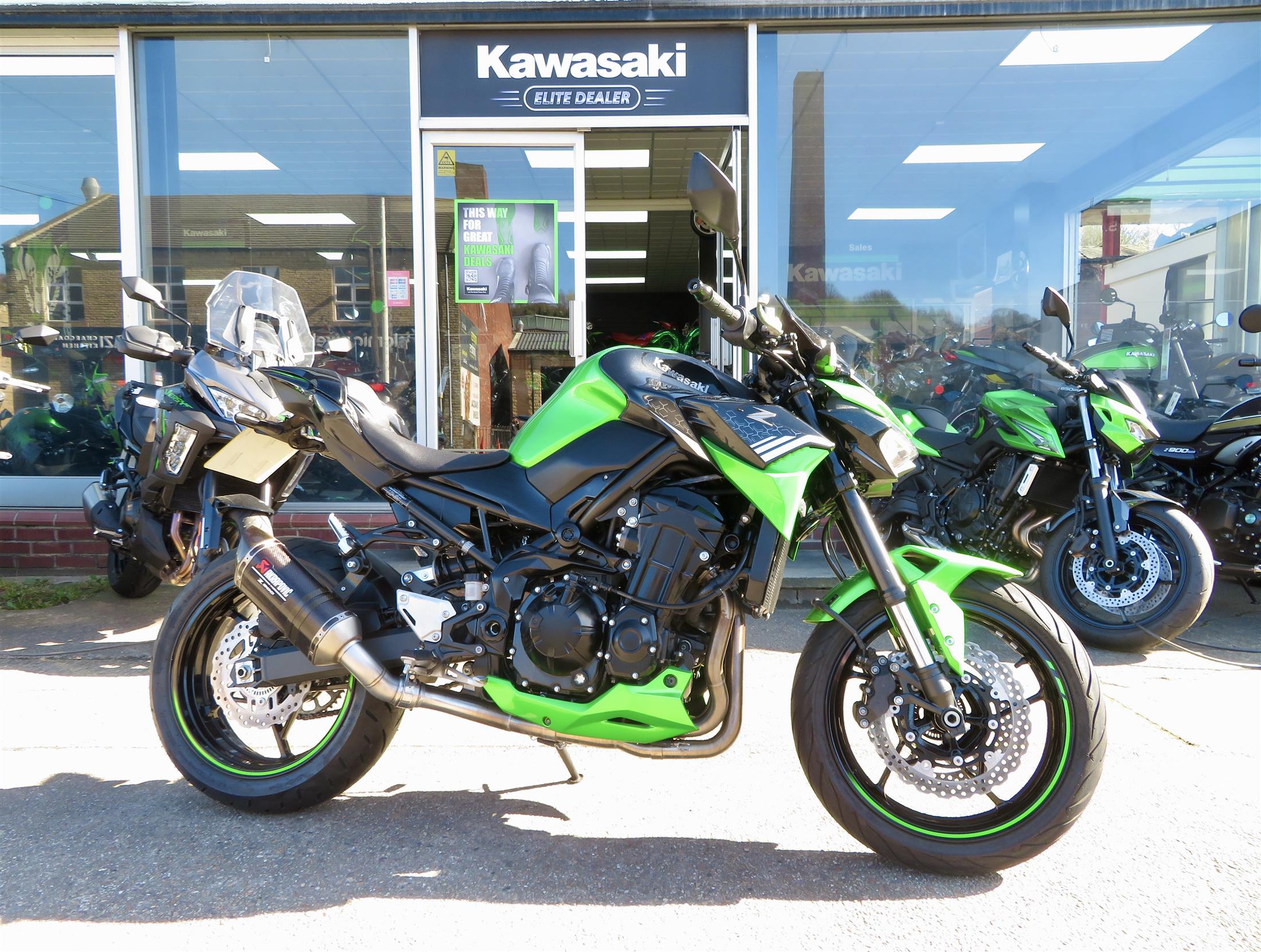 For sale here we present a 2020 Kawasaki Z900 Performance Edition in Candy Lime Green. The bike has covered 7,548 miles and had 1 owner from new. The Performance Edition features an Akrapovic carbon exhaust can, Kawasaki rear seat cowl, Kawasaki tank pad and a Kawasaki fly screen. This example is also has Akrapovic down-pipes, a radiator guard and a tail tidy fitted. Abs, LED lighting, TFT display, traction control, power modes and riding modes are standard. New rear tyre fitted. Finance, part exchange and nationwide delivery are available. If you would like any further information, or wish to secure this lovely Z900, please do not hesitate to contact our sales team.