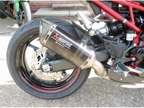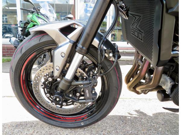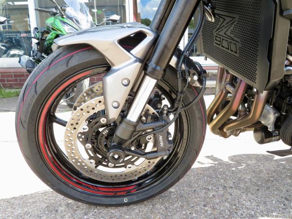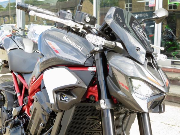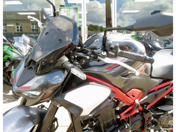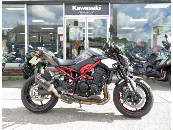 For sale here we present a 2025 Kawasaki Z900 Performance Edition in gred/red. The bike has covered 1,181 miles and had 1 owner from new. The Performance Edition has an AKRAPOVIC carbon exhaust can, Akrapovic carbon exhaust heat shield, Kawasaki rear seat cowl, Kawasaki fly screen and a Kawasaki tank protector. Additionally, this bike has an R&G tail tidy, radiator guard, R&G front fork protectors and rear paddock stand bobbins. Abs, traction control, quick-shifter, auto-blipper, riding modes, cruise control, LED lighting and new and improved TFT display. Kawasaki warranty until June 2029! Finance, part exchange and nationwide delivery are available. Secure this stunning example today with a £99 deposit. If you would like any further information, please do not hesitate to contact our sales team.