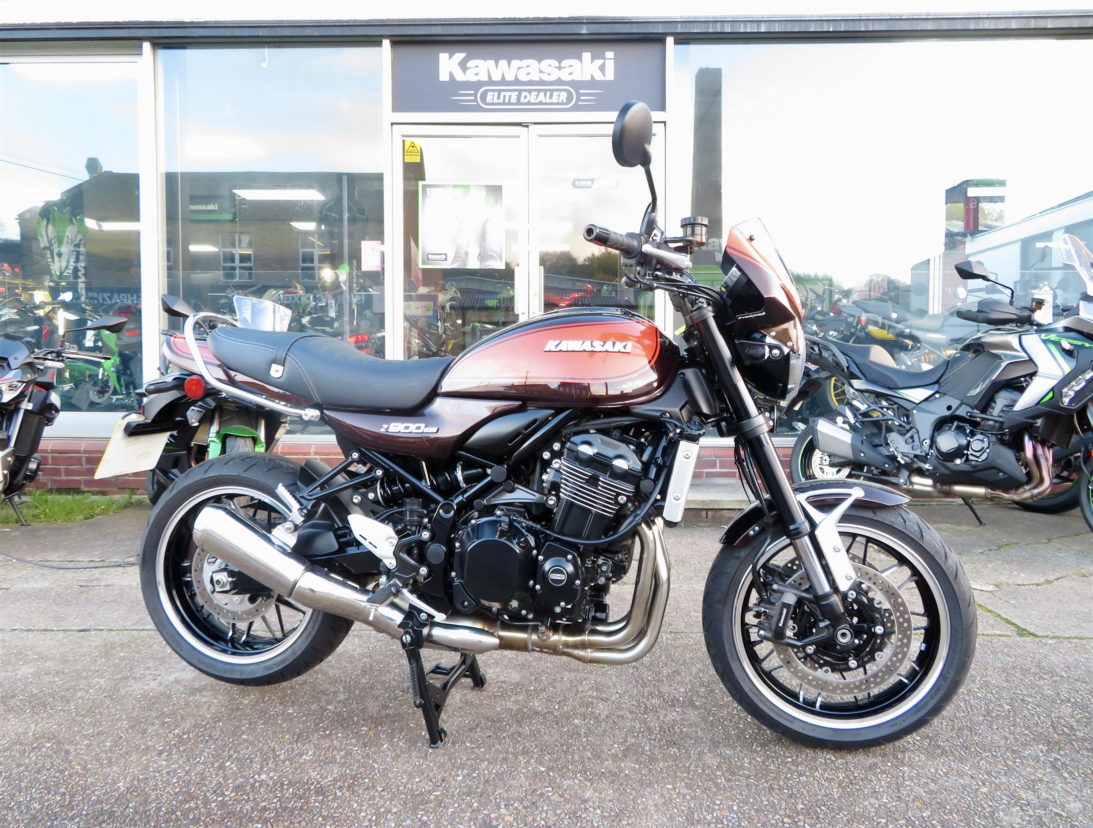 For sale here we present a 2019 Kawasaki Z900RS in Candytone Brown / Orange. The bike has covered 5,647 miles and had 2 owners from new. Abs, traction control, a gear indicator and LED lighting are standard on this model. Extras fitted to the bike include; Kawasaki centre stand, Kawasaki ‘Retro’ tank badges, Kawasaki tank pad, Kawasaki chrome grab rail, ‘DOHC’ engine case badges, a radiator guard and a Puig colour coded front nose fairing. HPI clear. 12 months mot included. Finance, part exchange and nationwide delivery are available. Secure this stunning Z900RS today with a £99 deposit. If you would like any further information, please do not hesitate to contact our sales team.