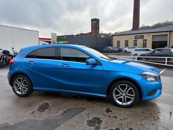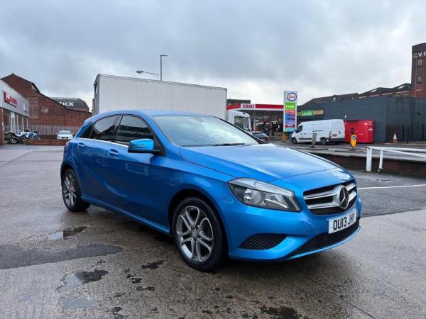 2013 Mercedes Benz A Class A180 CDI Sport in blue. 50,212 miles and 2 owners from new. This Sport trim variant boasts a 1.5 litre diesel engine, offering an impressive fuel economy. Inside, you’ll find a practical cabin featuring an Aux in socket for your music, a multi-function steering wheel for convenience, and air vents with a stylish chrome surround, bluetooth connectivity, air conditioning and IsoFix rear seats. New front and rear brake pads and new rear discs. Finance available, please call us for a quote. If you would like any further information, please do not hesitate to contact us.