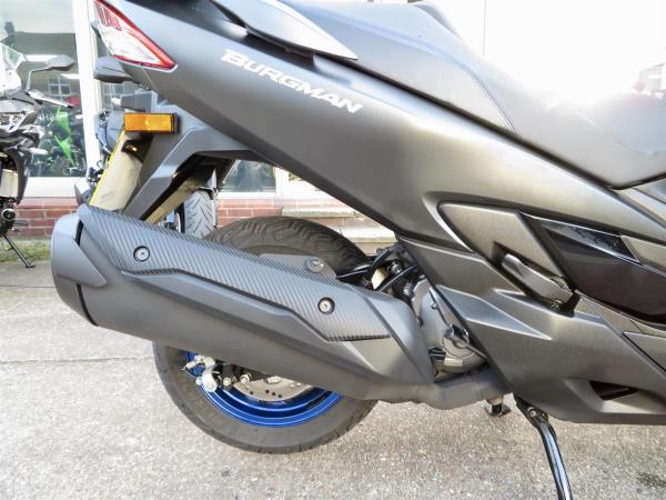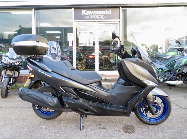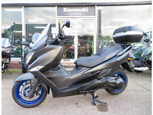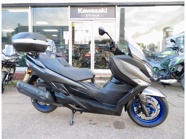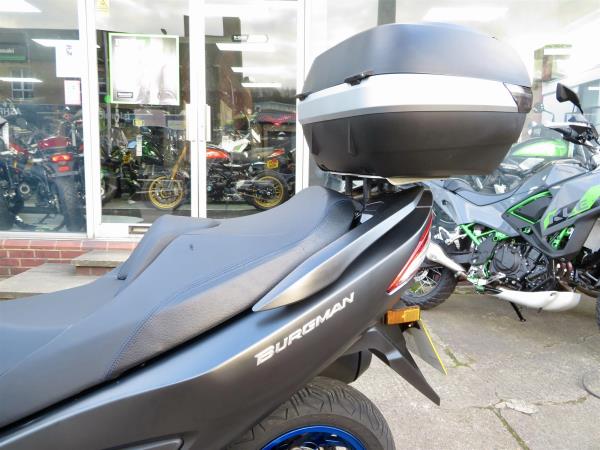 For sale here we present a 2022 Suzuki AN400 Burgman. The bike has covered 7,236 miles and had 1 owner from new. Full Suzuki dealer service history. This example comes fitted with a genuine Suzuki top box and Oxford heated grips. Abs, traction control, a centre stand, Led headlight and 42 litre under-seat storage are standard on this lovely 400cc scooter. Finance, part exchange and nationwide delivery are available. If you would like any further information, or wish to secure this Burgman 400, please do not hesitate to contact our sales team.