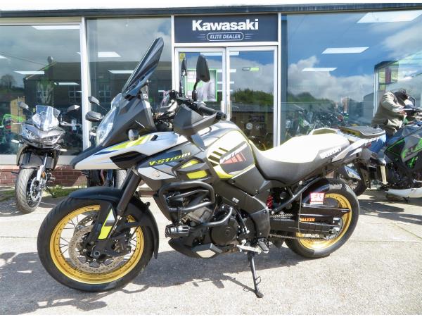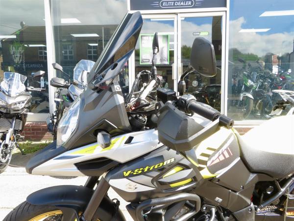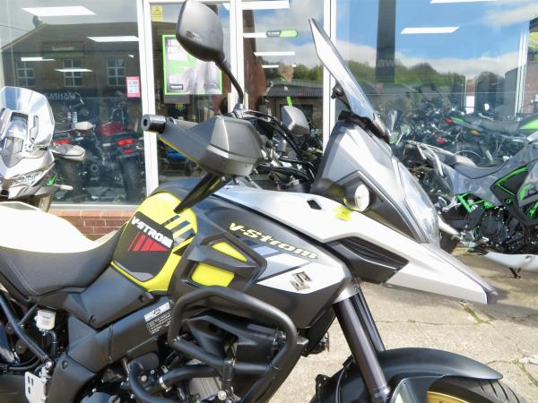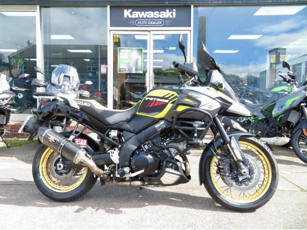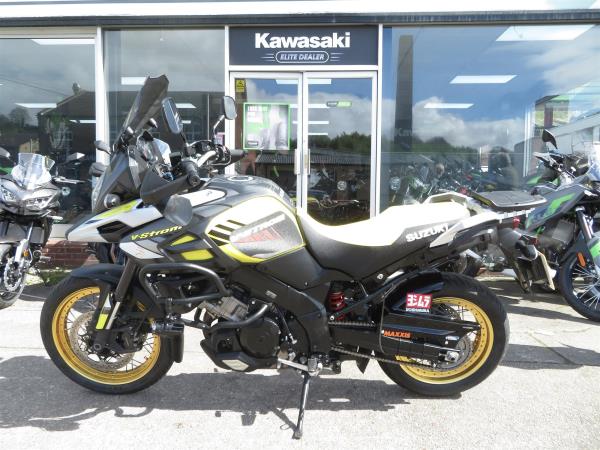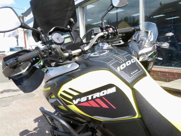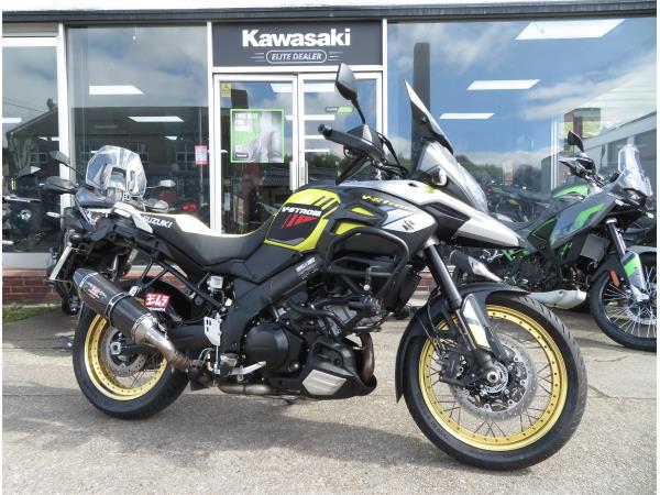 For sale here we present a 2017 Suzuki DL1000 V-Strom in yellow. The bike has covered 5,346 miles and comes with a YOSHIMURA exhaust can, Powerbronze rear hugger, crash bars, fog lamps, Daytona heated grips, Givi top box base plate, handguards and a tank and knee protection kit. Abs, traction control and a gear indicator are standard. Both tyres are in good condition with plenty of tread on. 12 months mot included up-on sale. Finance, part exchange and nationwide delivery are available. Secure this V-Strom 1000 today with a deposit of only £99! If you would like any further information, please do not hesitate to contact our sales team.