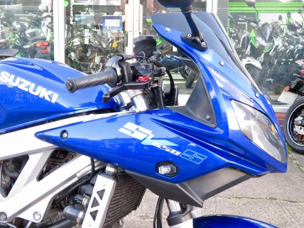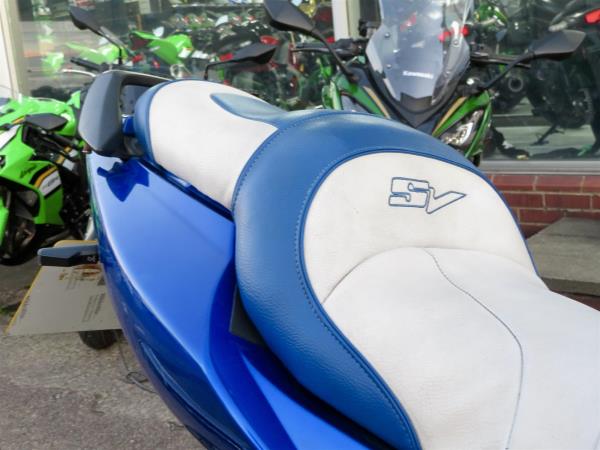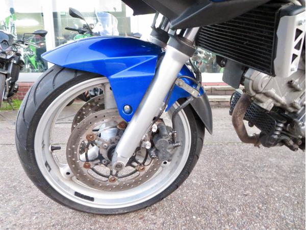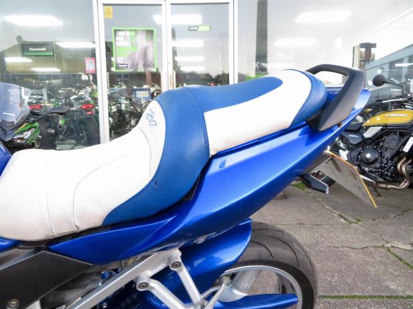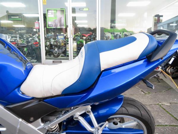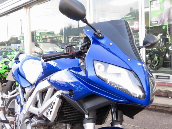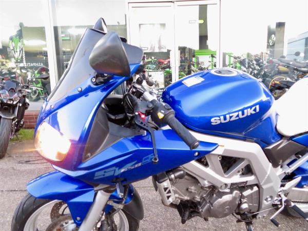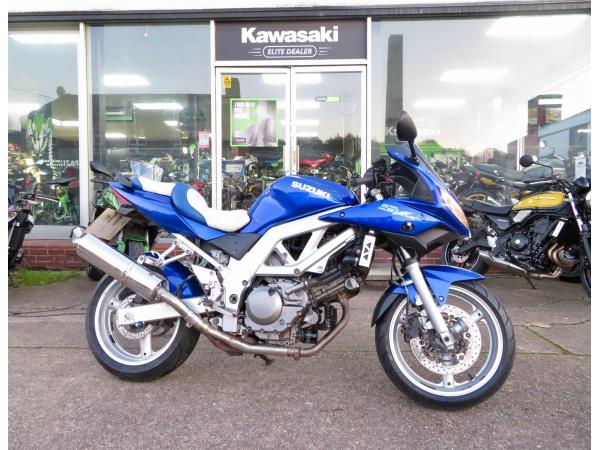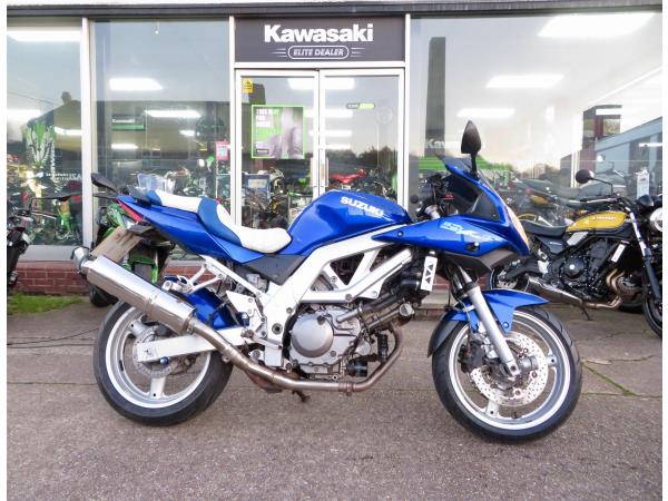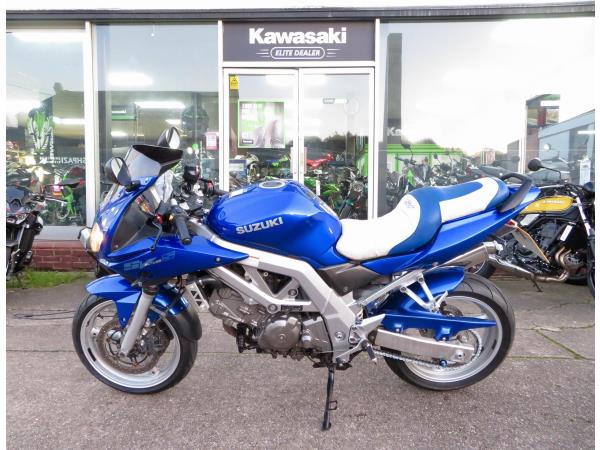 2003 Suzuki SV650 SK3 in blue. The bike has covered 41,899 miles and runs great! MOT until 09/10/2026. No advisories on latest mot. Recent tyres fitted. The is some corrosion on the bike but it does run great! The bike has a stainless exhaust can, custom comfort seat, colour coded rear hugger, rear paddock stand bobbins, dark smoked screen, tank pad, adjustable levers, mini-indicators and a front fender extender. Secure this bike today with a £99 deposit. An ideal commuter or first ‘big’ bike. Please contact our sales team if you would like any further information.