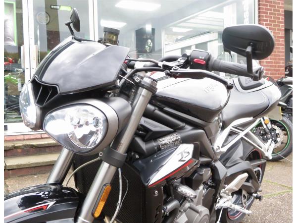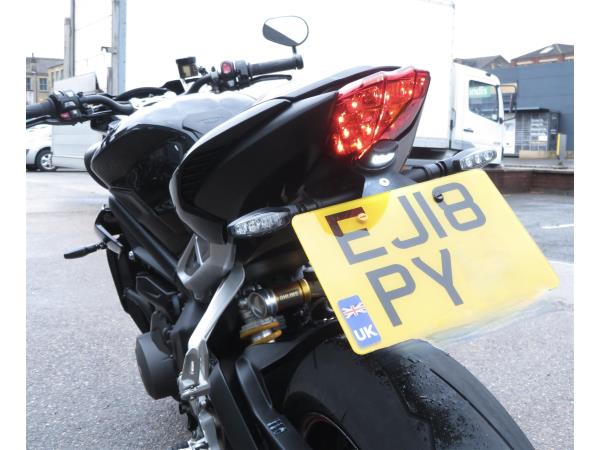 For sale here we present a 2018 Triumph Street Triple 765 RS in black. The bike has covered 10,270 miles from new and is in excellent condition. Extras fitted to the bike include an EvoTech tail tidy, EvoTech radiator guard, EvoTech rear paddock stand bobbins, Triumph rear seat cowl and a Triumph tank pad. Brembo brakes, Ohlins rear shock and a quick-shifter are standard on this ‘RS’ model. HPI clear. The bike has just had new spark plugs, air filter and an oil and filter change. Finance can be arranged. Part exchange welcome and nationwide delivery is available. Secure this stunning example today with a deposit of only £99. If you would like any further information, please do not hesitate to contact our sales team.
