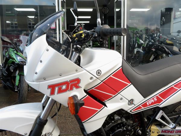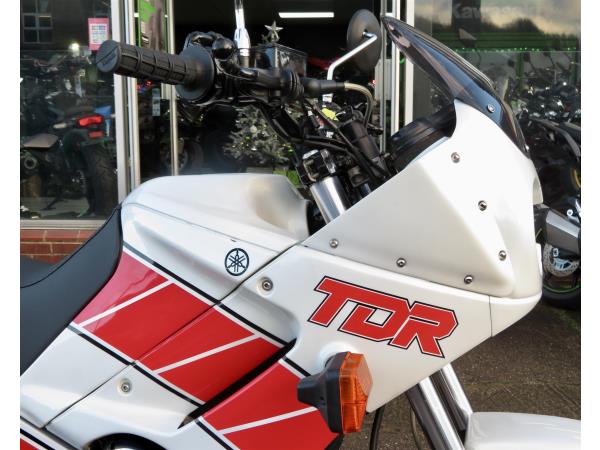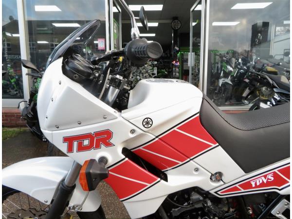 Yamaha TDR125 Belgarde 2-Stroke. 1991 model. Registered in the UK in 2003. The bike has covered 27,741 km (17,237 miles). Fully restored, including full engine re-build, re-built wheels and new tyres. The bike will have 12 months mot up-on sale. Private sale from a staff members collection, therefore, no warranty sold or implied. Viewing welcomed. Please call 01924 461112 for any further information.