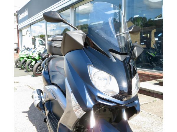For sale here we present a 2011 Yamaha Xmax 250 in blue. The bike has covered 7,017 miles from new. It has a Yamaha top box, Oxford heated grips, Yamaha large windshield, centre stand and under-seat storage. Finance, part exchange and nationwide delivery are available. Secure this 250cc scooter today with a £99 deposit. If you would like any further information, please do not hesitate to contact our sales team.