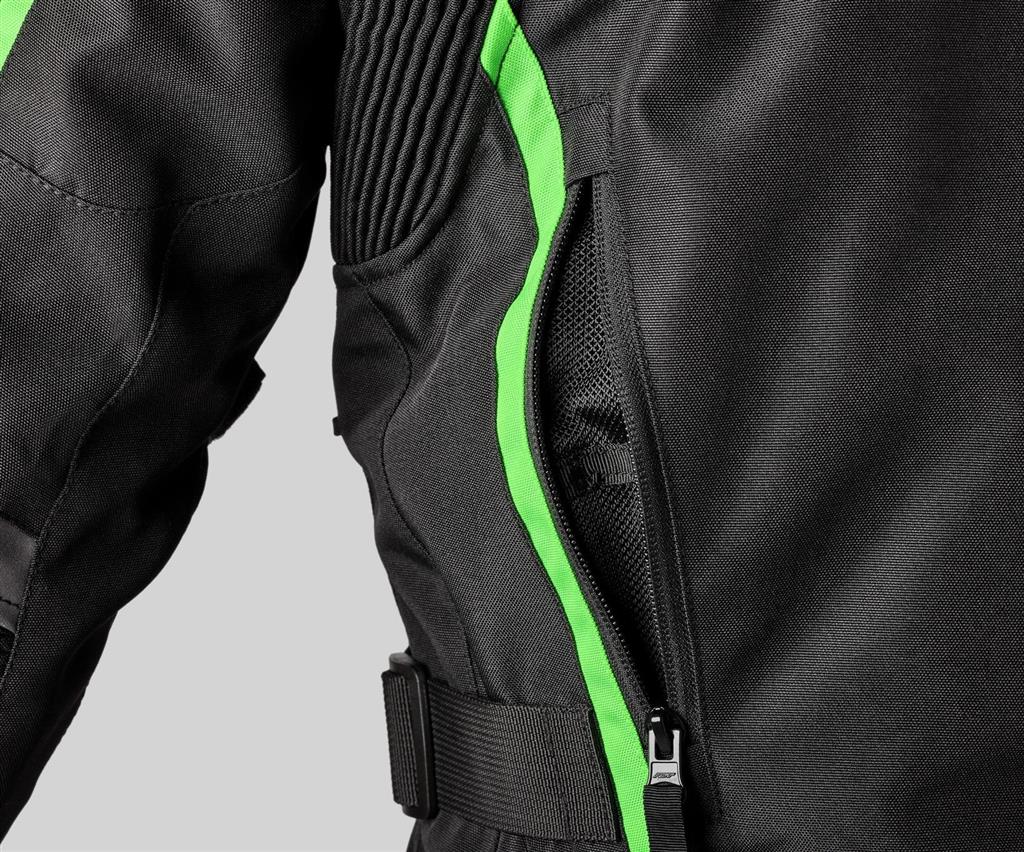 Stretch panels| arm and waist adjusters all support a more comfortable contoured fit. Additional supporting features include MAX zippers| a 360° connection zipper for connecting to any RST garment and multi-pocketed intake and exhaust ventilation areas which can be opened as required to channel airflow in| around and out of the jacket.